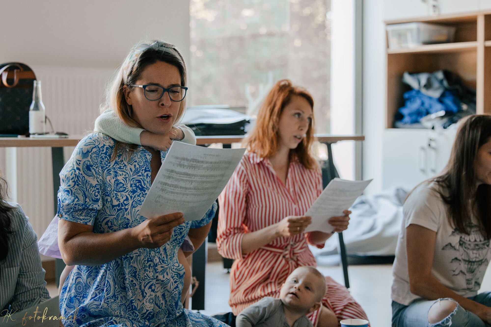 Śpiewaniu w Chórze Mam towarzyszą dzieci. Wiele się dzieje: od rozgrzewania głosu, przez rozśpiewywanie repertuaru, na luźnych rozmowach kończąc. W tym czasie dzieci są przy mamach, a jeśli mają ochotę, wchodzą w interakcje z innymi dziećmi, bawią się albo, jeśli już potrafią, same podśpiewują czy też wpatrują się w swoją śpiewającą mamę lub inne chórzystki. Dużo się dzieje. Badania wskazują, że ten dynamiczny kontekst może mieć spore znaczenie. W eksperymencie, w którym uczestniczyło 30 mam wraz z dziećmi, poproszono o śpiewanie piosenki Twinkle, Twinkle, Little Star na dwa sposoby: uspokajający i zachęcający do zabawy. Okazało się, że energiczne, głośniejsze i szybsze wykonywanie dziecięcej piosenki, któremu towarzyszyły rytmiczne ruchy, przykuwało uwagę dzieci do ich mam bardziej niż wykonanie spokojne i ciche.